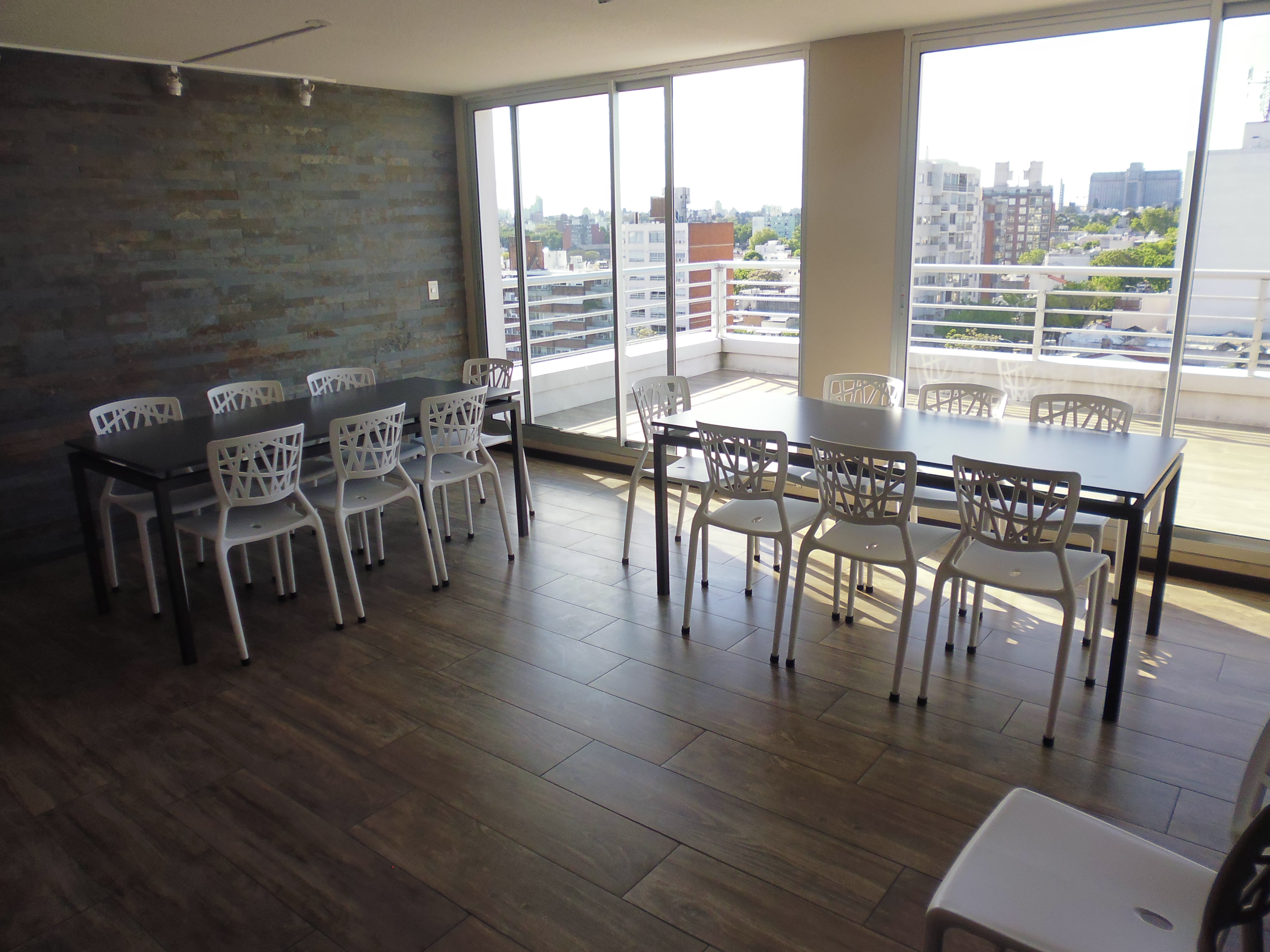 En el último nivel del edificio se dispondrá de un gran salón para eventos, con baño, kitchenette, parrillero y amplias terrazas con vista panorámica. Oficiará tanto de barbacoa y solarium, como para salón de eventos empresariales.