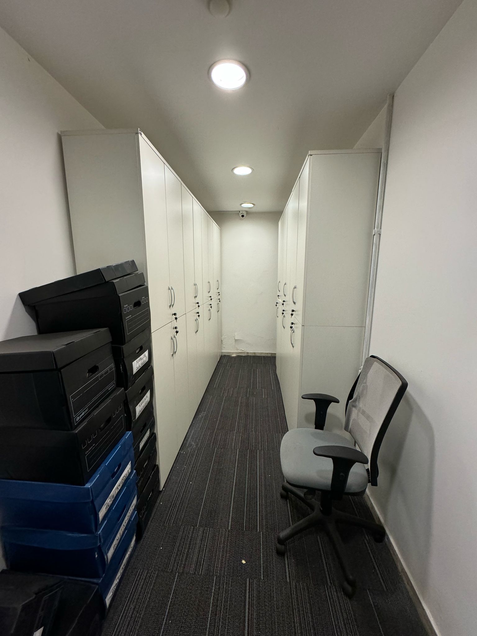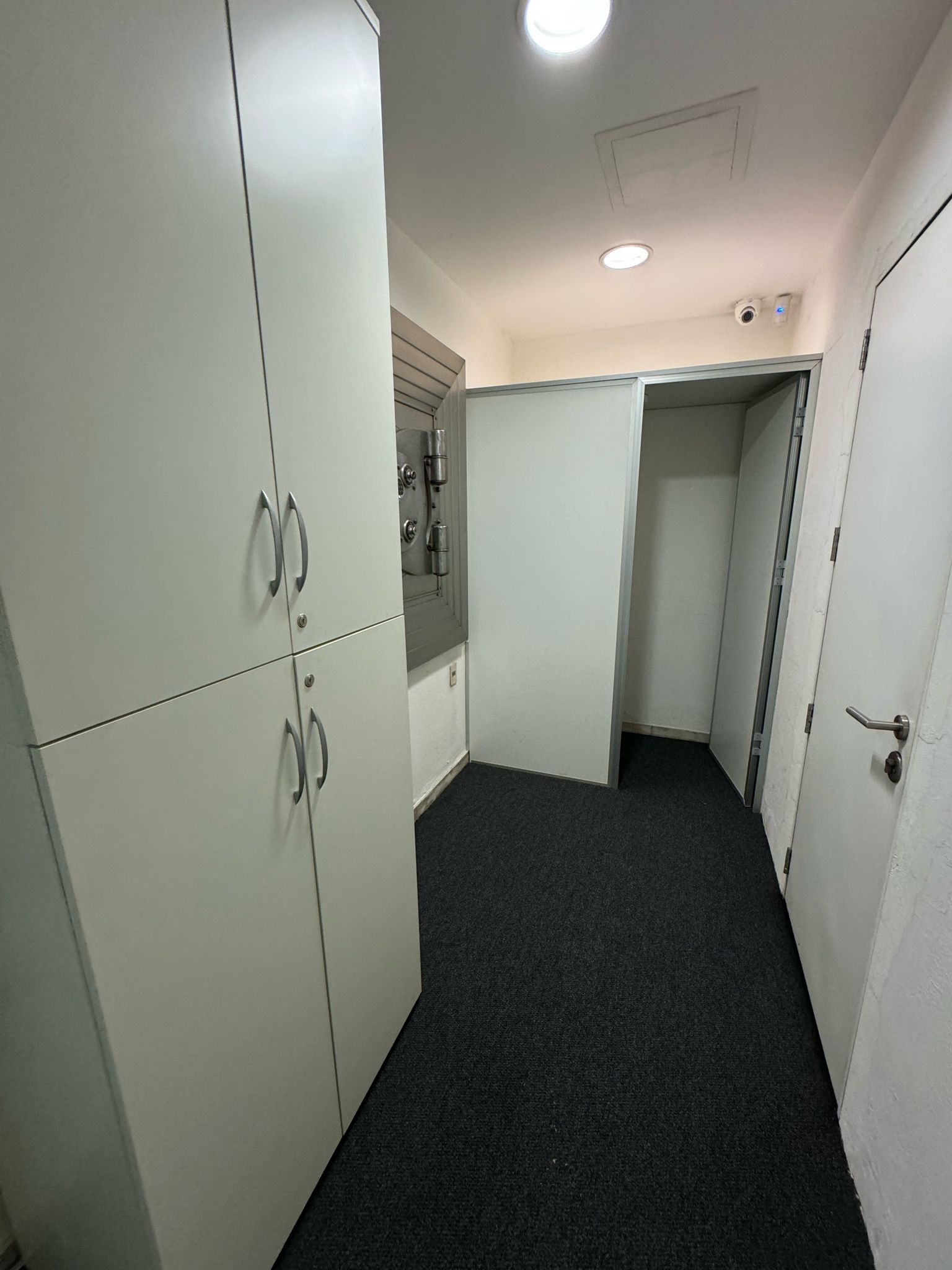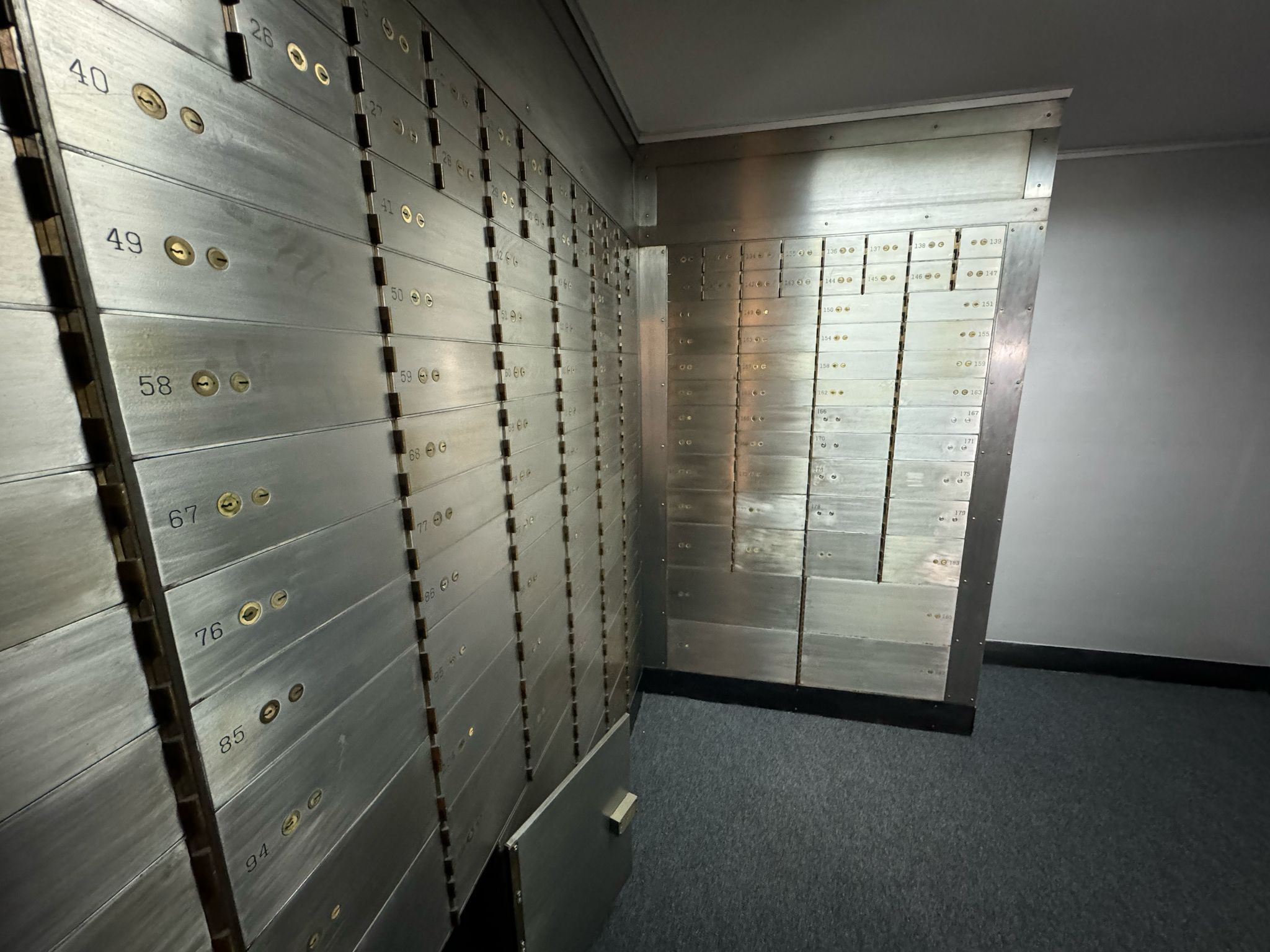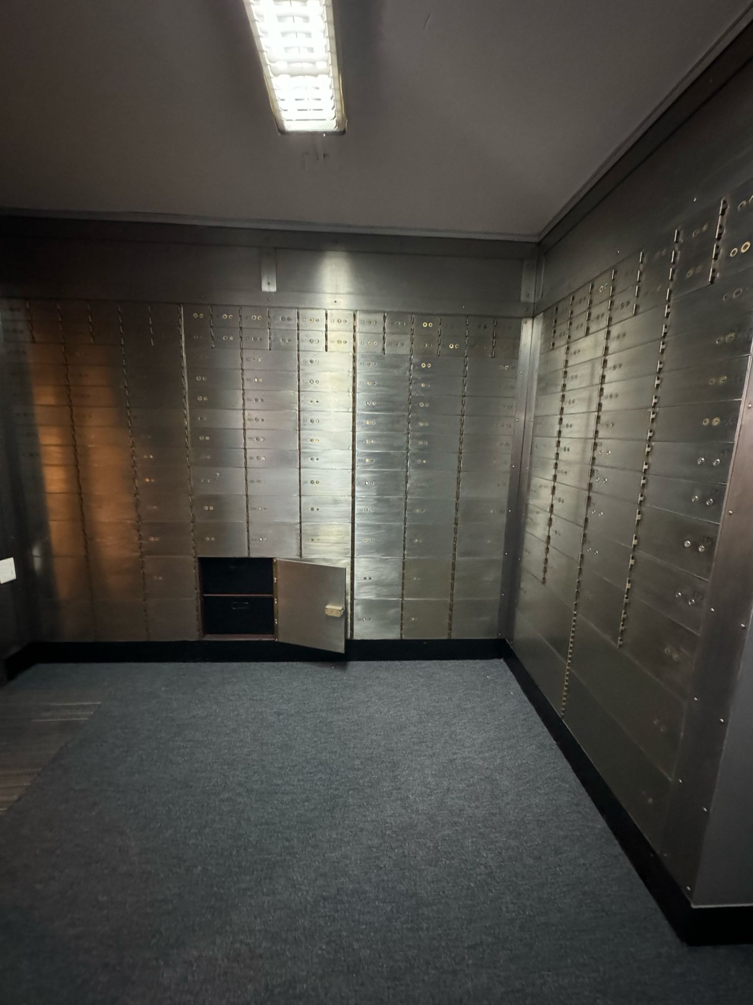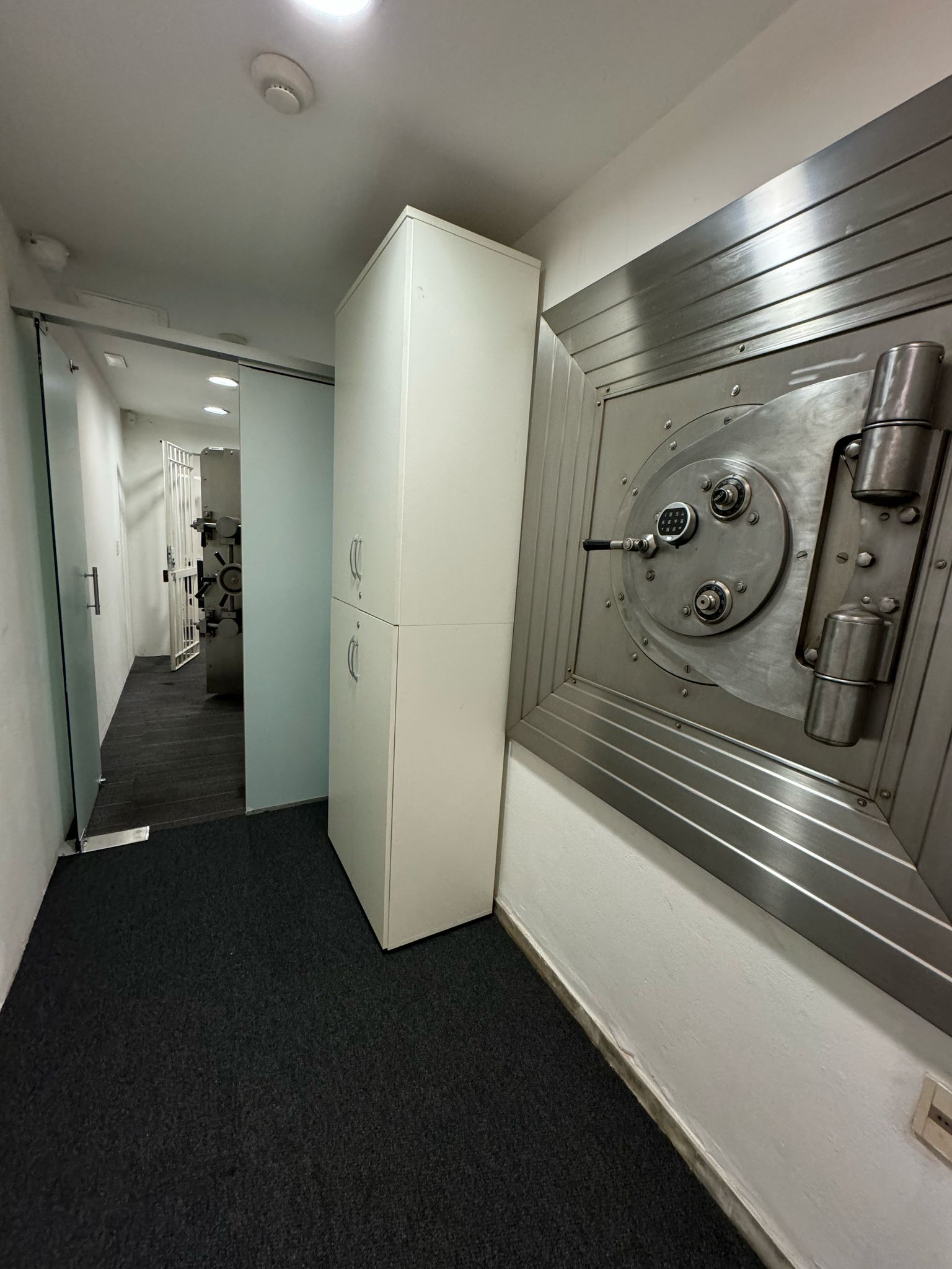 Subsuelo con infraestructura de seguridad instalada: sala de espera, sector servidores, área blindada con rejas, 6 cajas fuertes importadas, 187 cofres individuales, sector de documentación y espacios de circulación. Altura 2,74 m.