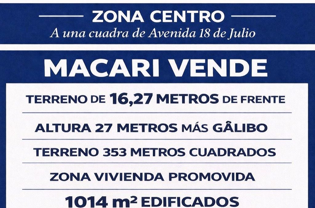 El padrón cuenta con 16,27 metros de frente y una superficie de terreno de 353 m², con una altura permitida de 27 metros más gálibo, lo que brinda un excelente potencial para desarrollo inmobiliario.